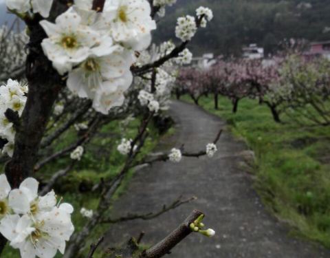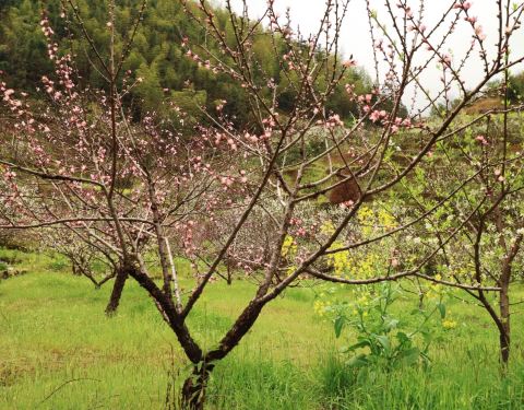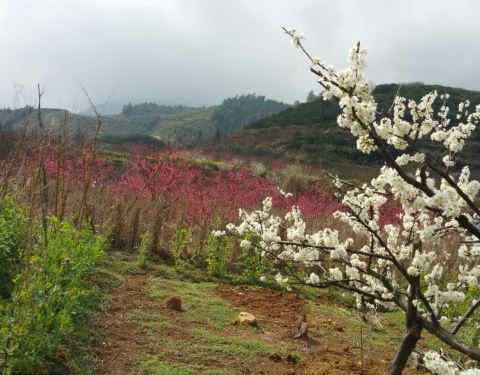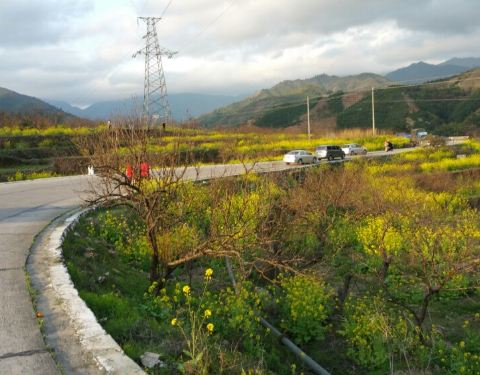 但可以想象得到桃花盛开的美景,两边都是桃花树,连绵数公里,油菜花,不知名的白色小花点缀其中可惜我们得到的资讯滞后,来到这里桃花树都是绿叶了。但可以想象得到桃花盛开的美景,两边都是桃花树,连绵数公里,油菜花,不知名的白色小花点缀其中。路修得不错。