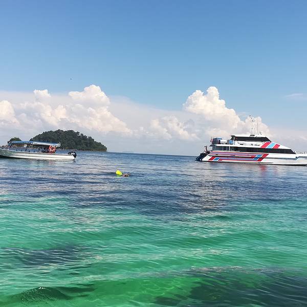 海很漂亮,而且鱼很多,浮潜的感觉很好。不足之处是不能过夜。而且船上有淡水洗澡,岛上没有海很漂亮,而且鱼很多,浮潜的感觉很好。船上的午饭种类不多,但是味道还不错,比岛上的饭要好。而且船上有淡水洗澡,岛上没有。不足之处是不能过夜。