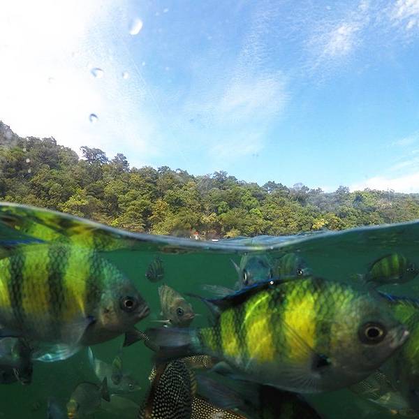 水中央平台附近鱼不是一般的多(价格贵一些),喜欢浮潜的朋友不要错过~区分平台和岸边的方法就是手里的这个防水带,记得不要丢失哦!在浮潜前 工作人员的流程讲解...据芭雅岛鱼超多,分为:水上平台浮潜和岸边浮潜