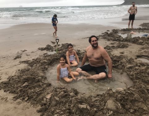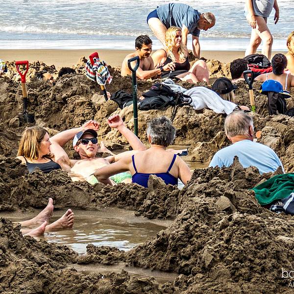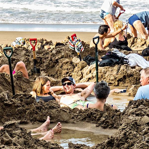 新西兰奥克兰旁边有个海滩那里是个温泉海滩,在沙滩上用铲子挖开沙子,把脚放进去是热的,当海浪打来变凉了新西兰奥克兰旁边有个海滩那里是个温泉海滩,在沙滩上用铲子挖开沙子,把脚放进去是热的,当海浪打来变凉了,奇。其实是有无数个泉眼。