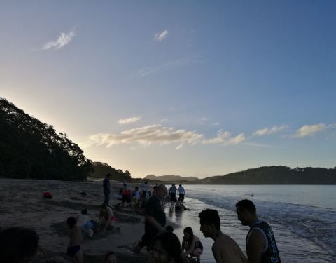 到达沙滩后看见的沙滩并没有想象中的冒烟景观,沙滩看起来和一般的沙滩大同小异。 原来所谓的热水沙滩范围不大,一个个自挖的坑躺满了...热水海滩是科罗曼德半岛的标志性景点之一,火山活动产生了大量的地下热水。