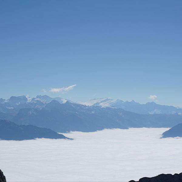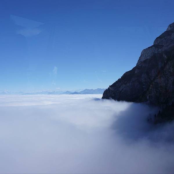 佛光更神奇,圆形的彩虹,我们并排四个小伙伴都觉得佛光在自己头上,都是好彩头啊瑞士的自费项目是最贵的,做小火车上到山顶遥望阿尔卑斯山。在山下只是多云,依稀能看到太阳,上到半山腰,乌云密布,心里有点打鼓,怕上山什么也看不到,结果穿过云层迎接我们的是艳阳高照!