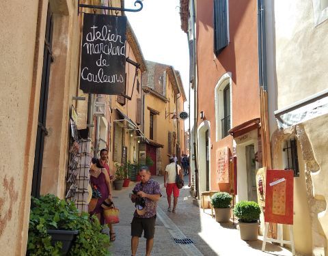 #驾客房车自驾法国 南部# 纵观普罗旺斯红土城的历史,这里在古罗马时期就有人在此居住,古鲁西永人被看做是古法国人种的重要分支。十八世纪后,随着近现代工业革命的爆发,纺织业和冶铁业在法国飞速发展,鲁西永以其特有的矿产资源,冶铁业和染织业称为此地的重要支柱产业,这里也一度成为风靡世界的采石圣地。直到20世纪初,随着现代冶铁技术的发展,当地的铁厂逐渐关闭。如今的红土城,已经完全被建成童话般的旅游胜地,当地盛产五颜六色的矿石颜料,加上难以媲美的山城小景,吸引了很多艺术家在此定居。