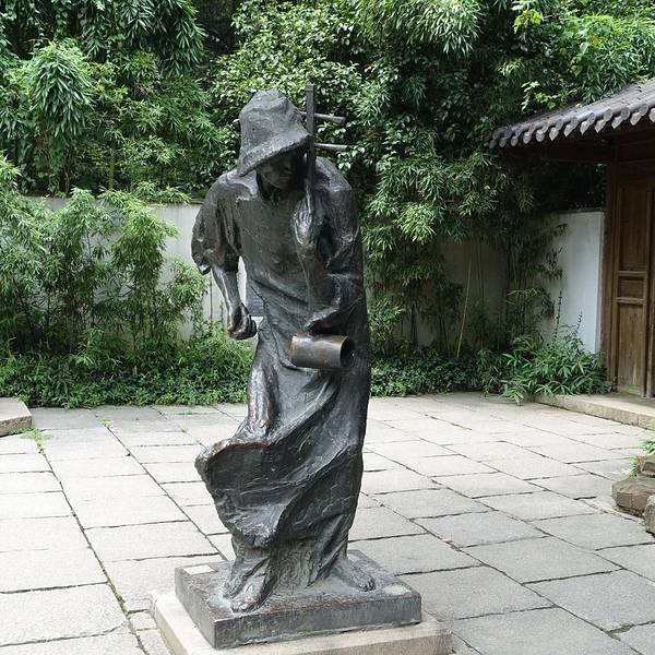 ...東麓,春申涧之南,进入院门,阿炳的铜像,状如音乐台的幕墙,有如道士斜卧的天然石,唯妙唯肖……