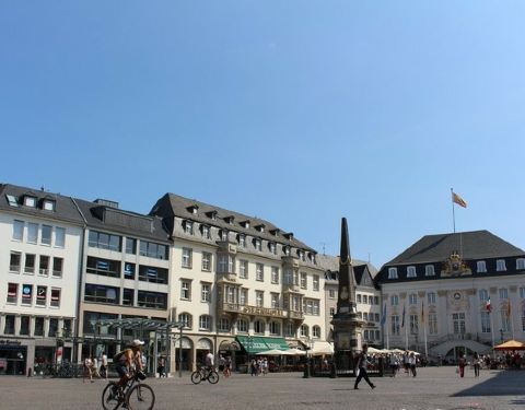 从火车站出口处一路前行,沿通往新城的步行街进发,能够依次到达游客中心,贝多芬广场,和明斯特大教堂。在周末的时候贝多芬广场里总是搭上白色的棚子,摆上跳蚤市场,可以从这里买到上好的有机水果和自家制作的...