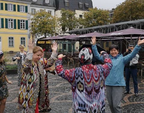今天来贝多芬雕像广场超值,广场有类似少数民族节,众多民族的人在广场摆摊,或美食,或手工艺品,还有演唱会。我有幸被邀请一起载歌载舞。