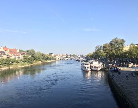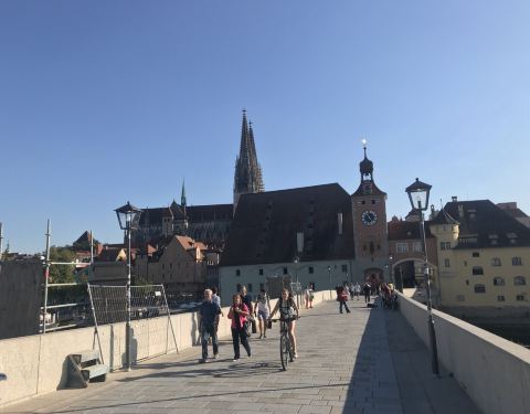 在桥上看看多瑙河两岸的风光是再好不过的了。但其实它已经经受了近900年的岁月洗礼雷根斯堡的石桥外观比较朴素,没有什么装饰,导致我一开始还以为它是一座新的桥。但其实它已经经受了近900年的岁月洗礼。这座桥本来有三座桥塔,现在只有一座了。里面还有个小小的博物馆。过了桥塔就是雷根斯堡的...雷根斯堡的石桥外观比较朴素,没有什么装饰,导致我一开始还以为它是一座新的桥。但其实它已经经受了近900年的岁月洗礼。这座桥本来有三座桥塔,现在只有一座了。里面还有个小小的博物馆。过了桥塔就是雷根斯堡的老城区了。在桥上看看多瑙河两岸的风光是再好不过的了。 展开