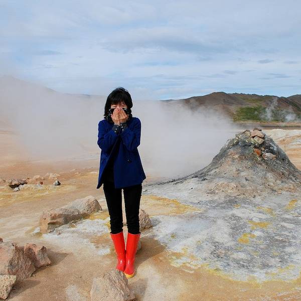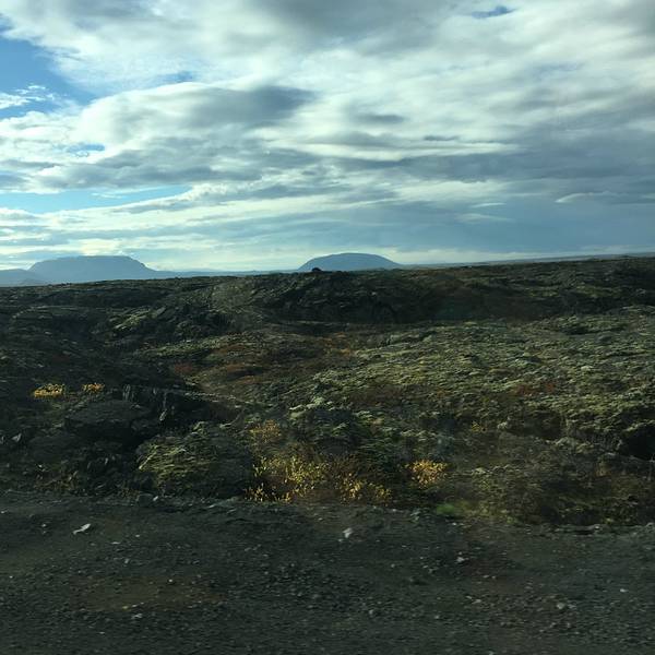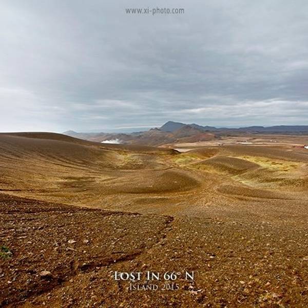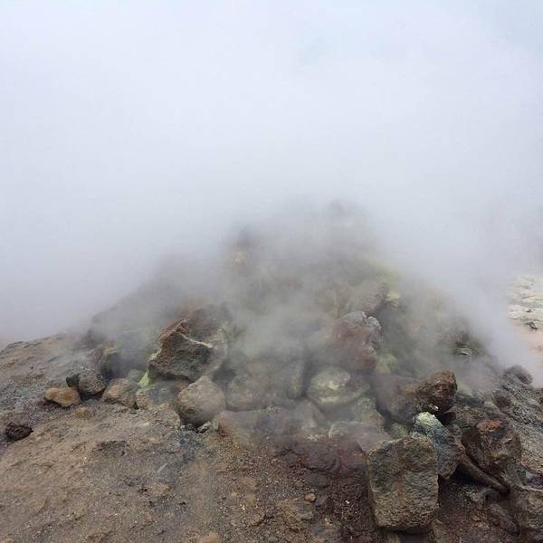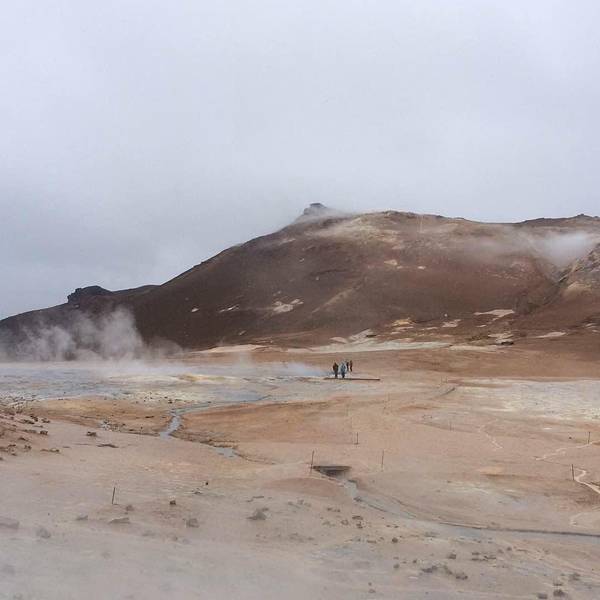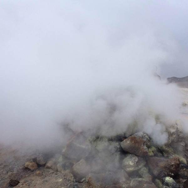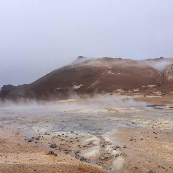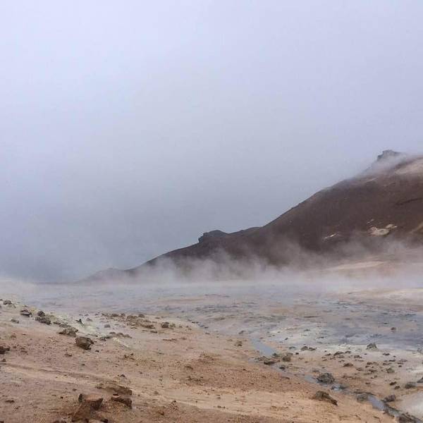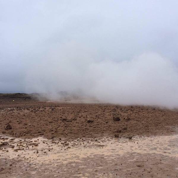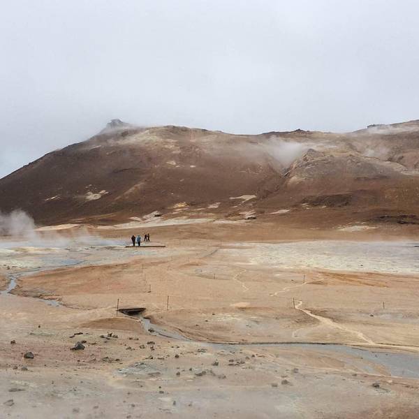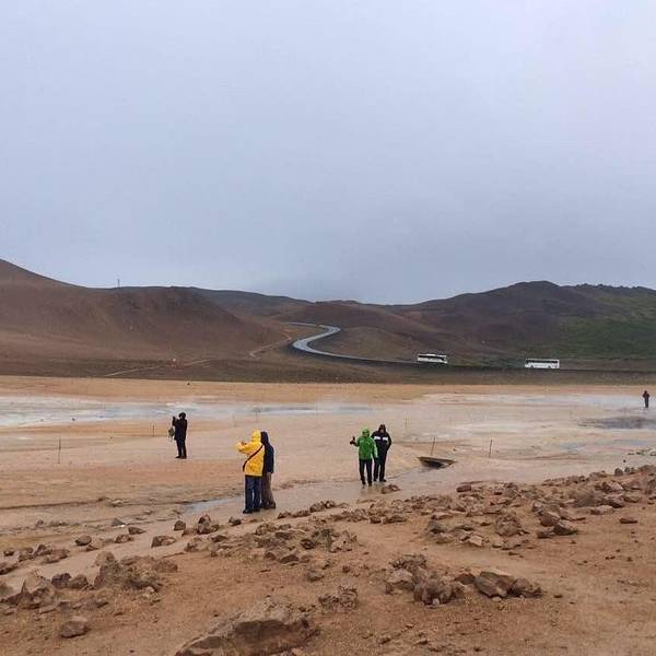 开2分钟就会在路边遇到hverrir地热。其实这是一片被硫化物腐蚀的地貌,可以看到硫磺泉眼里噗噗涌动的灰色物质,以及扑鼻而来的臭鸡蛋味,但是地貌还是很漂亮的,淡淡的黄色。另外还有一边有着石头堆积的地热向上冒气,是这一行上看到的最大一片的地热硫化地貌。 展开