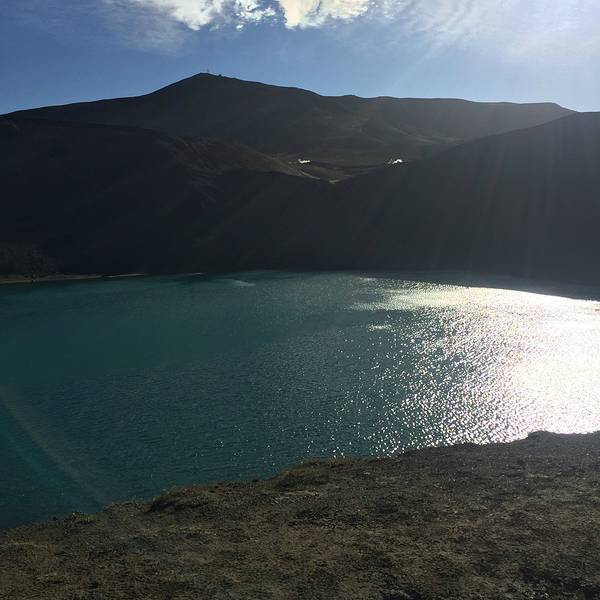 对抗着妖风,我们努力保持着身体的平衡。火山湖虽美,但我们可不想被吹下去。每走一步都很艰难,努力让脚步不要偏移既定的路线。于是,我们没有能够走完整个一圈火山口,就连仅有的这几张照片都是随便举着相机盲拍的。火山口上绕着走,从不同角度看到的火山湖。这是另一侧的小湖,听说是为了建电站进行勘察而人工造成的。