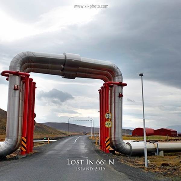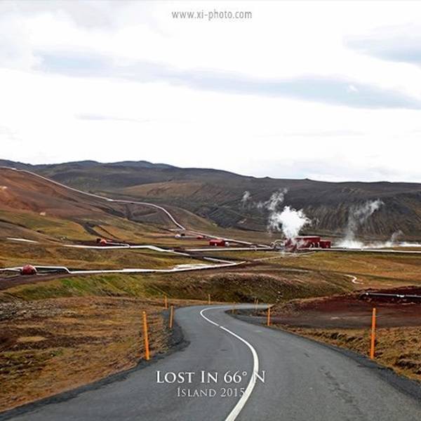 另外还有一边有着石头堆积的地热向上冒气,是这一行上看到的最大一片的地热硫化地貌地热工厂stay on the road!1号公路向东继续开,卡拉夫拉火山一会就会在北边(左手边)顺着一条公路开进去。就会被扑鼻而来的臭鸡蛋味