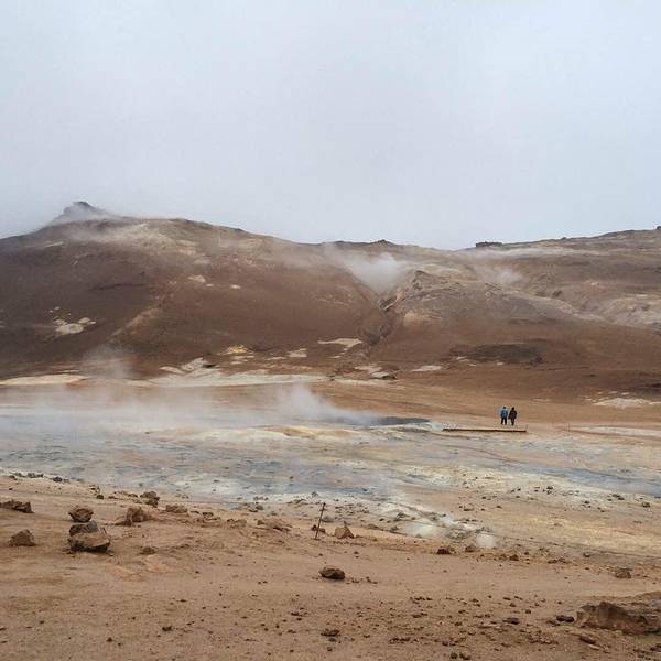 那里有冒泡的泥潭、喷着热(又臭)气的地热口、奇异的地貌,宛如月球表面。冰岛北部米湖附近的地热区临近米湖会先来到Krafla火山区。只要闻到刺鼻的硫磺(臭鸡蛋味)就知道了。那里有冒泡的泥潭、喷着热(又臭)气的地热口、奇异的地貌,宛如月球表面。