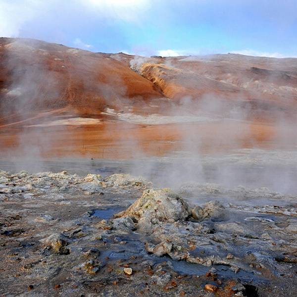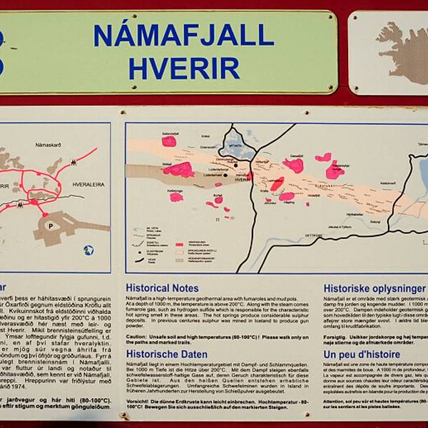 Námafjalll是米湖地区最经典的景点,早晨日出时的景象会更加诡异和精彩。独家呈现的景区地图清晨日出时前往地热区Námafjall和附近的Hverir热蒸汽池,看看这里随地所见的间歇泉眼和泥浆泡泡池,这一地区空气中弥漫着刺鼻的火山硫磺+熏臭气味的地热现象。之而后前往附近的洞穴温泉Storagja和Grjotagja游览...清晨日出时前往地热区Námafjall和附近的Hverir热蒸汽池,看看这里随地所见的间歇泉眼和泥浆泡泡池,这一地区空气中弥漫着刺鼻的火山硫磺+熏臭气味的地热现象。之而后前往附近的洞穴温泉Storagja和Grjotagja游览探寻,再顺时针攀爬和环绕死火山口Hverfjall(黑菲尔死火山口)。 展开