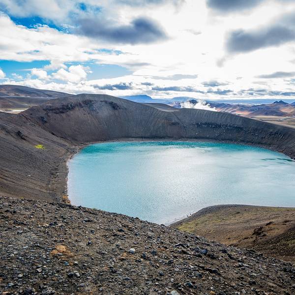 viti是一个高山火山湖 颜色随着阳光角度的不同而变幻从惠尔山下来 已经被山风带走了大部分能量