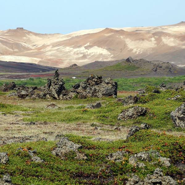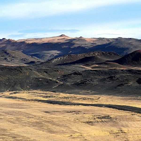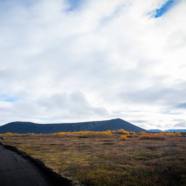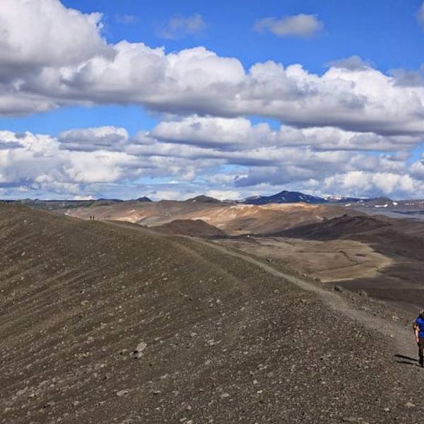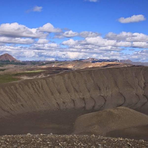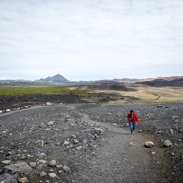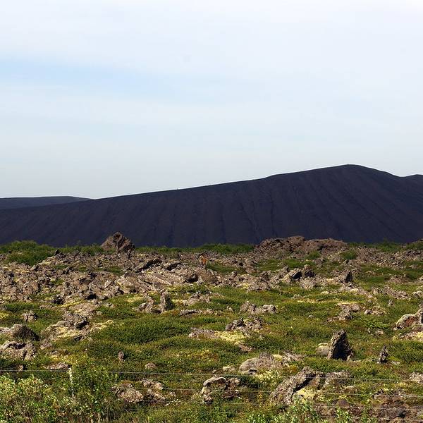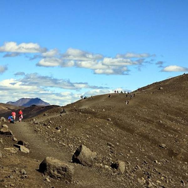 熔岩迷宫至此5km11m。在864公路上老远就可以看到这座火山,转出去大概一两公里就可以到达。哈法尔火山是环形山体,中间有个圆形黑土堆。而山体坡度平坦不陡峭,所以夏季徒步游览火山口...哈法尔火山Hverfell黑火山
