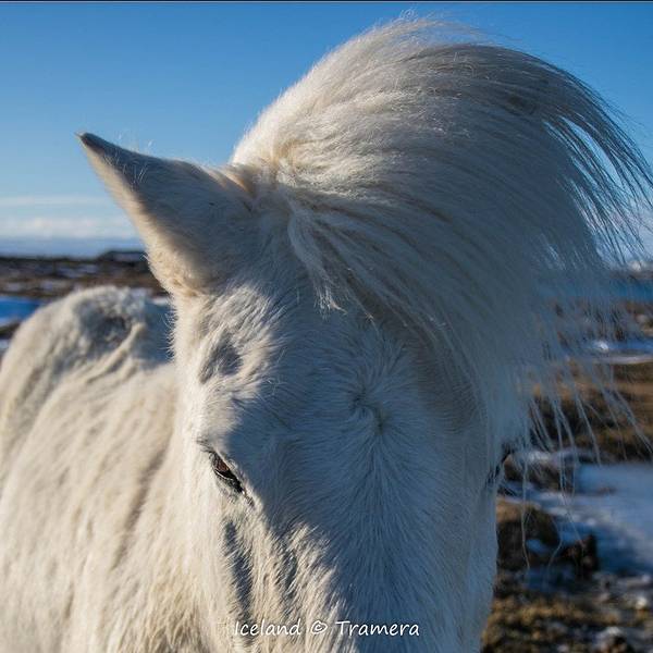 在火山最高点。通往惠尔火山小路的对面有一匹帅气的偏分(大概是被风吹的)白马千万不能错过【惠尔火山口 Hverfell】