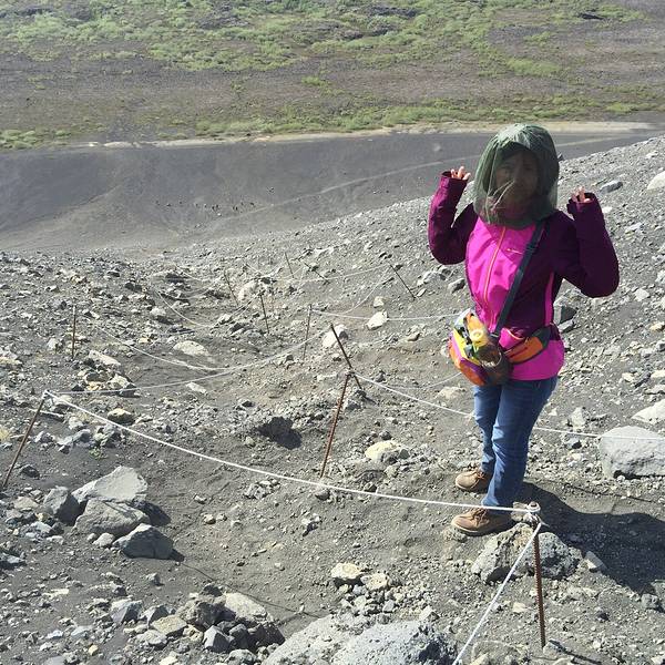 下了车,风出奇的大,吹得我们头都快晕了。漫天灰云下,黑沉沉的大地,黑沉沉的火山,唯有黄色的植被让它们看起来多了些许生命力。