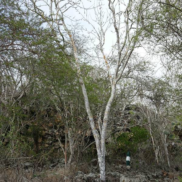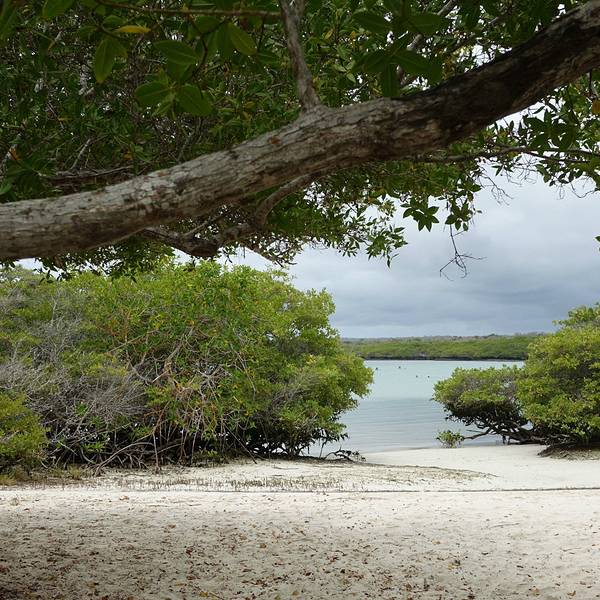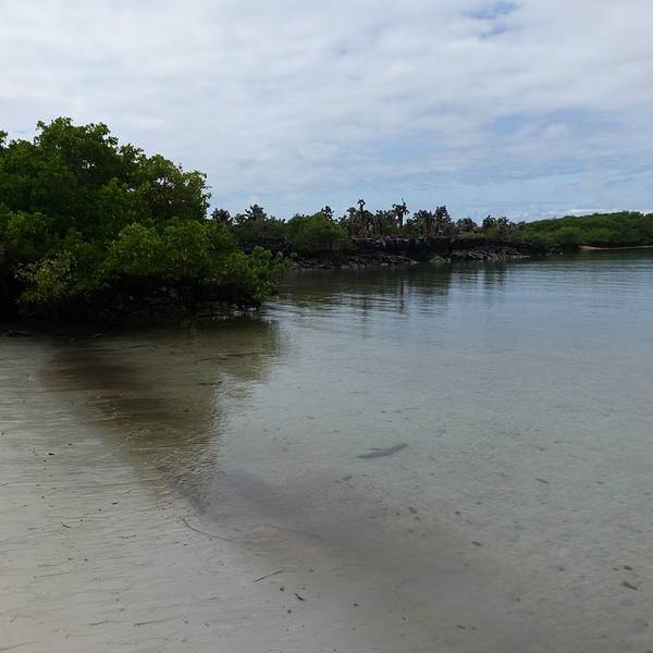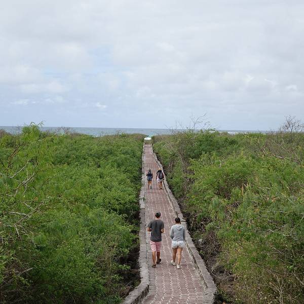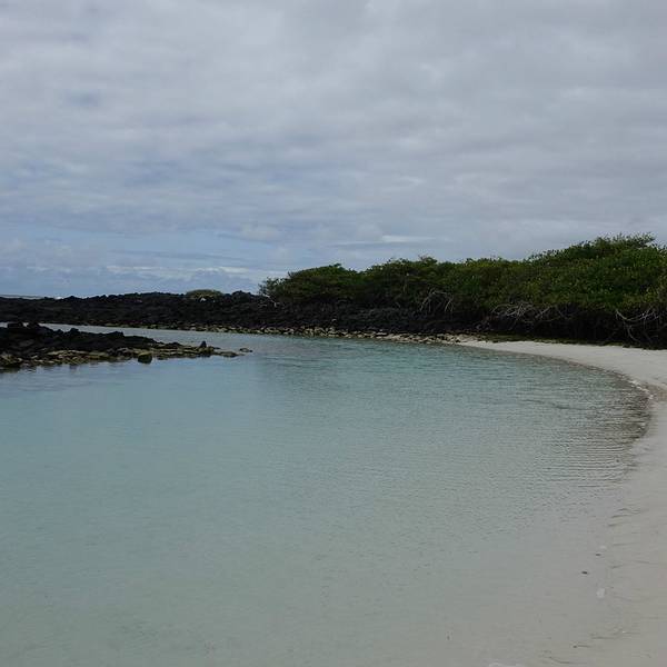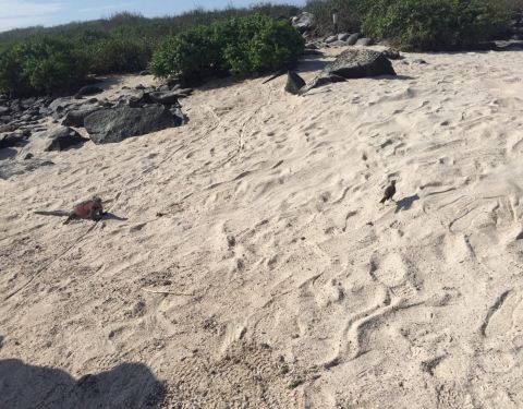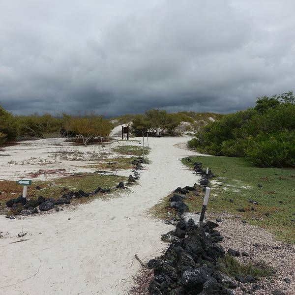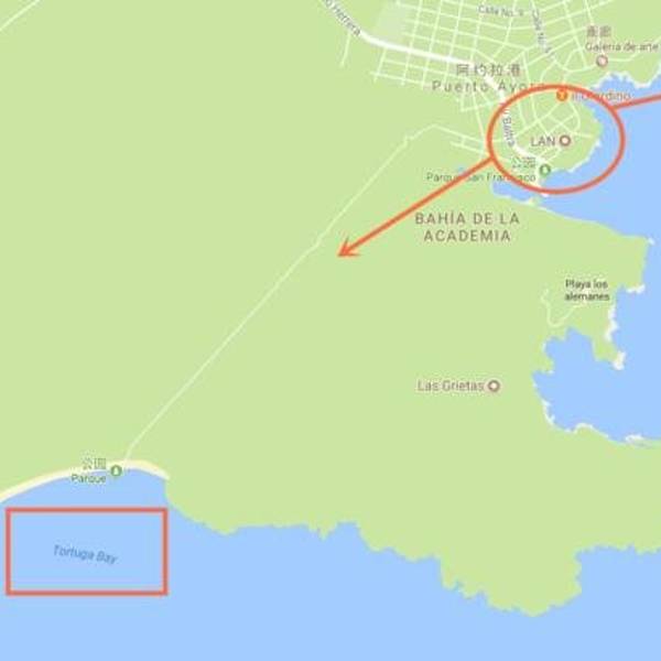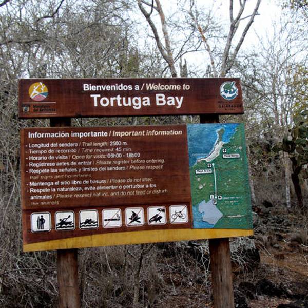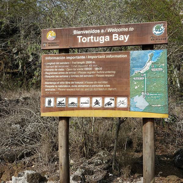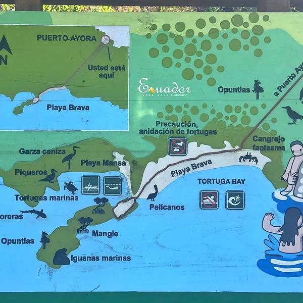 从地图上可以看出,以阿约拉港为中心,查尔斯达尔文研究站和海龟湾位于其东西两个方向。大部分午后才能抵达阿约拉港的游客,当天都只能选择一个景点。海龟湾(Tortuga Bay)位于圣克鲁斯岛南侧,有一片白色的沙滩,因每年产卵季有大量海龟到此产卵而得名。