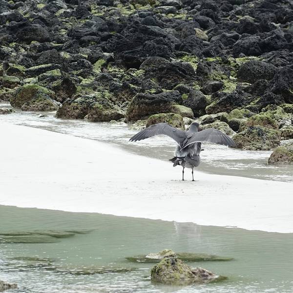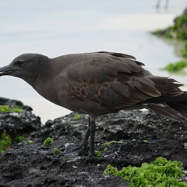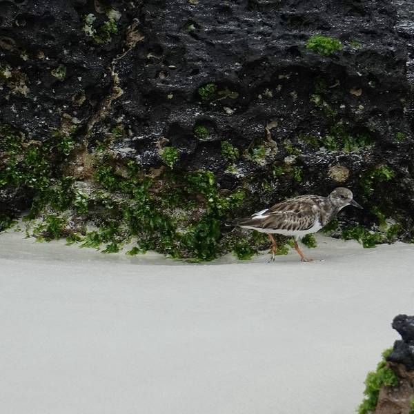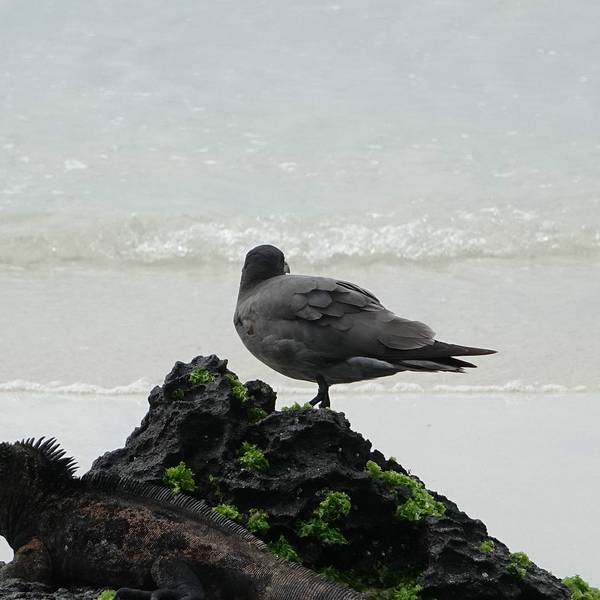 出租车司机将我放在海龟湾的入口就走了,我看四下荒凉,还隐隐有些担心出来的时候要怎么返回港口,几个小时后才发现这担心根本是多余的,这是后话。攀上一段石阶,便是海龟湾的登记处(Check point),所有游客进出时必须登记,估计是为了在闭园时盘点未出园的游客。海龟湾游览时间是06:00-18:00,17:00之后不再接待入园。园内地图↓看地图上说离海边大约有1km,想说也不算很远嘛,后来才知道,这条栈道至少有2.5km那么长。刚开始走的时候还很兴奋,看到雀鸟(Darwin Finch)、嵴尾蜥(Lava Lizard)的时候还激动的拿相机拍来拍去,到后面越走越绝望,赤道烈日将所有裸露的皮肤都晒得发烫,而且由于这座群岛的特质,整条路上几乎没有遮荫的树木。天知道我是怎么背着重重的相机三脚架走这么远的。亏蔷薇小姐有大长腿啊,走了差不多半小时之后,眼前豁然开朗。栈道通往海龟湾宽阔的布拉瓦海滩(Playa Brava,Brava Beach),这片海滩长达2公里,布满细软的白沙,水鸟多在这里逡巡,看准时机一个猛子扎进海里。不过这海浪明显有些汹涌,适合冲浪多过游泳,建议各位不要在此处下水。难道顶着烈日走了半小时就来到这么一个不能下水的地方吗?!当然不!继续往海滩西侧(也就是右手边)走,经过红树林(Mangrove)区,是一片风平浪静的湾区——曼萨海滩(Playa Mansa,Mansa Beach)。这里就像是一个巨大的游泳池,被红树林和白沙滩环绕,大量欧美游客在这里浮浅、游泳、晒太阳,而且身材都好好啊。尽管我是穿着bikini来的,可是!我没带浴巾啊啊啊啊~~况且海滩上没有冲淋设备,我看很多人从海里爬上来之后都是用自带的矿泉水冲沙子的~~好吧,算了,我还是老老实实找个树荫坐会儿吧,面朝大海,发一发呆~~