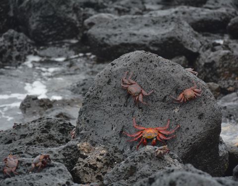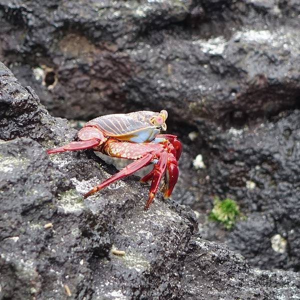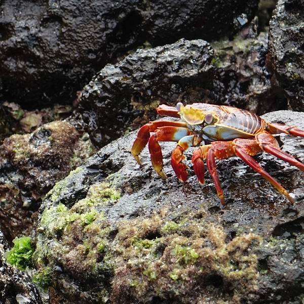 乘船环岛观光,其实并不是个舒服的好差事!熔岩、仙人掌,典型的干旱岛屿植被特征。一路走好渔人码头附近,随便找个地方,就可以观海蜥蜴、红石蟹,人与动物和谐相处到了极致!