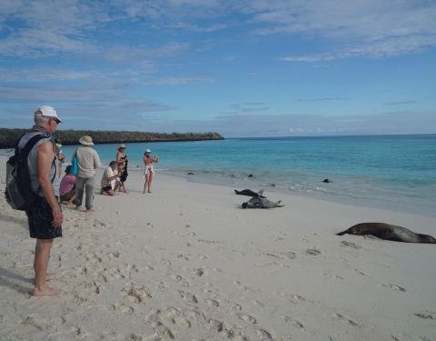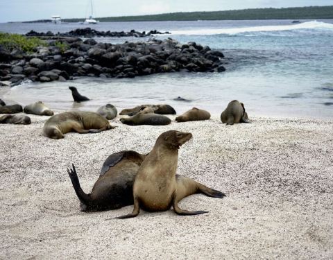 快艇把我们送到一个长3公里的白色沙滩上,海水沙滩都非常漂亮,沙滩上躺着几十头海狮,但他们都在睡午觉快艇把我们送到一个长3公里的白色沙滩上,海水沙滩都非常漂亮,沙滩上躺着几十头海狮,但他们都在睡午觉。还有许多海鬣蜥,样子长的吓人但他们却是素食主义,只吃海藻。
