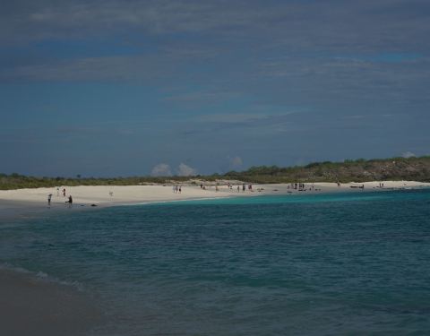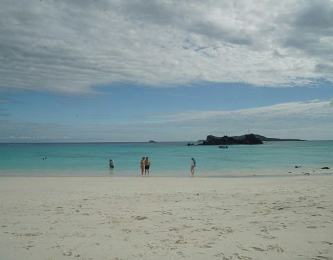 海龟岛海滩是加拉帕戈斯群岛上难得的一处干净洁白的沙滩,这里是海龟上岸休息产卵的地方,但我们来时...海龟岛海滩是加拉帕戈斯群岛上难得的一处干净洁白的沙滩,这里是海龟上岸休息产卵的地方,但我们来时并不是海龟的繁殖季,因此没看到这一景象,但海滩上慵懒的海狮和海豹还是为我们的游览增添了很多的乐趣。