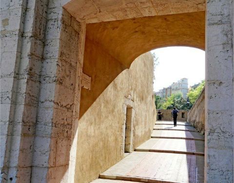 王宫建在悬崖上,所以去王宫和摩纳哥老城都得走上这个斜坡。一路走一路可以眺望山脚下的景色王宫建在悬崖上,所以去王宫和摩纳哥老城都得走上这个斜坡。一路走一路可以眺望山脚下的景色。再穿过门洞后就看到王宫前的广场了。