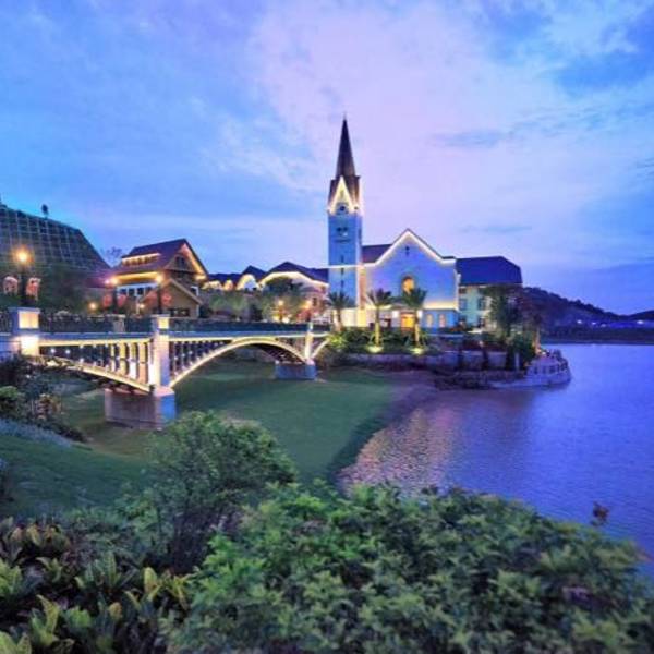 五矿哈施塔特文旅小镇是五矿地产借鉴奥地利建筑设计风格,以世界小镇——奥地利哈尔施塔特小镇为建筑蓝本,倾力打造的一座欧洲风情旅游小镇。小镇占地约20万平方米,三面环山,内拥17万平方米原生态内湖,将浓郁的奥地利建筑风格和欧陆人文风情融入当地得天独厚的山水资源之中。 小镇上有三个风情广场(文化广场、啤酒广场、音乐广场)、一个特色度假型酒店(五矿哈施塔特君澜度假酒店)、三大主题类游玩场馆(观光类、体验类、运动类)共计数十个游玩项目,以及婚纱摄影、商业街区、沿湖步道、会所及教堂等一系列风情设施。让您不出国门仿若置身异域童话当中,一种风情,两座小镇,来到五矿·哈施塔特文旅小镇,可以深深感受到原汁原味的欧陆风情与中国传统文化、岭南文化交融碰撞的奇妙美景。 (一)三个风情广场① 文化广场哈施塔特文化广场是体验小镇欧洲文化的开端,无论是镶嵌在建筑上的白天鹅,还是静静盘踞在广场中心的国际象棋音乐喷泉,均有着浓浓的奥地利风味。相传,国际象棋中的王象征着国家,没有皇宫,到了残局必须“御驾亲征”,其他棋子则代表着社会各阶层,不管阶级高低,皆相生相克。音乐喷泉起,文化广场似上演着一出欧洲阶级斗争史。② 啤酒广场奥地利诗人霍夫曼斯塔尔曾这样写过“碰杯,碰杯,昨天已是咽下的泡沫。”霍夫曼斯塔尔本身就是一个喜爱喝啤酒的人,在闲暇时候都会去酒馆喝啤酒,与人聊天,了解时下讯息。酒馆可谓是欧洲的情报站与人们休闲娱乐的场所。啤酒是奥地利休闲生活文化之一,奥地利人民用粮食酿造的啤酒醇香可口,同时也是作物丰收的象征,品尝纯正的奥地利啤酒就是对奥地利人民的尊重。五矿·哈施塔特将原汁原味的奥地利啤酒文化呈现,邀您共同分享奥地利人民的丰收与休闲之乐。③ 音乐广场1867年,“蓝色多瑙河”在小约翰,施特劳斯历经了一年的精心创作下完成,这首曲子象征着奥地利人民的活力,广场以蓝色多瑙河命名,也是奥地利人民对音乐的喜爱。大家知道为什么小镇这些铜人只有四个吗?因为缺的就是你呀!(二)一个特色度假型酒店五矿哈施塔特君澜度假酒店小镇内设五矿哈施塔特君澜度假酒店,酒店三面环山,拥有超17万平方米的原生内湖,一桥之隔即是奥地利风情小镇。总占地约6600㎡,共计12层,内设185间套全景观(山水景观)客房,自助餐厅、800平方米宴会厅,新型度假酒店功能外延。涵盖小镇9个分管业态:难忘的面(君澜面吧)、桃源·兰轩、“Cosplay”主题餐厅、湖畔音乐餐吧、小镇会客厅、童玩中心、康体中心、中心厨房、小镇食堂。酒店以西式音乐元素为设计主题,提供全流程婚喜宴功能产品和服务。在这座风景幽雅的度假酒店里,您可以享受具有欧洲音乐元素的全景观客房,还可尽览异域小镇的如画美景。(三)三大主题类游玩场馆(1)观光类①3D玻璃桥哈施塔特玻璃桥是3D玻璃桥,桥身长度260米,悬空60米。行走在几十米的高空中,脚下是“触目惊心”的透明玻璃桥面,这是一座3D魔幻玻璃桥,其刺激之处在于有两大块会“裂开”的玻璃。在专属于浪漫爱情的玻璃桥上被丘比特所眷顾,耳边,风车沙沙作响,眼前,小镇美景尽收。② 星光游艇星光游艇是哈施塔特小镇不可错过的一个游玩项目之一,踏上游艇,环哈施塔特湖航行,整座小镇尽收眼底。哈施塔特湖是一条10.5万平方米的原生内湖,深处达6米,呈不规则形状,湖岸线长达4公里。在阳光照射下,水面波光粼粼,倒映着湖岸尖顶教堂、色彩斑斓的木屋,碧水滢滢,飘荡着游艇的哈施塔特湖犹如这片土地上的一颗翡翠明珠。站在星光游艇上,亲身感受奥地利欧陆风情与中国传统文化、岭南文化碰撞的奇妙美景。③ 名人蜡像馆哈施塔特名人蜡像馆是深莞惠地区一家实体蜡像体验馆。堂内有古今中外几十位名人明星,个个栩栩如生、活灵活现,真假难辨。他们分别来自政治、演艺娱乐、体育及高科技领域,设计精美,内容丰富!有叱咤风云奥巴马、普京,有国际明星成龙、刘德华、、加勒比海盗,有性感女神玛丽莲梦露、奥黛丽赫本,有体坛风云人物乔丹、梅西。有众人喜欢的孙悟空、白雪公主、蜘蛛侠、超人、大熊、熊二、光头强,还有风趣搞笑会聊天的机器人,逗您乐不停!(2)体验类① 巧克力工坊醇香丝滑的巧克力甜而不腻,一口咬下,巧克力与榛果的香味遗留在唇齿之间,久久回味......哈施塔特巧克力工坊有着非常专业的欧洲巧克力制作工艺,精心选用高端的可可豆为制作原料,确保每一份巧克力的出品都醇香丝滑。在这里,你可以了解巧克力的制作过程,可以在粉白ins风的座位上喝个休闲下午茶,动手能力强的朋友,还可走进巧克力DIY区,亲手制作自己爱吃的巧克力!② 玻璃工坊从17世纪初到18世纪末,穆拉诺彩玻璃制品风行欧洲,金色和红宝石色调穆拉诺玻璃受欢迎,还成为许多博物馆的珍贵的收藏品。穆拉诺的玻璃制造业,称雄欧洲几个世纪,代表了欧洲玻璃文化,哈施塔特玻璃工坊沿用穆拉诺玻璃制作工艺,打造特色玻璃工艺文化。在这里,你可以了解玻璃工艺的历史,可以近距离观赏场馆内展示的七彩玻璃,还能亲手DIY玻璃制品,甚至还可以把自己玻璃带回家!③Cosplay馆作为一个小众场馆,Cosplay馆对于许多人来说是一个非常神秘的地方。那么在哈施塔特Cosplay馆可以做什么呢?这里有超20个拍摄场景、近百套Cosplay服装供你选择。除了高端i