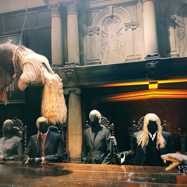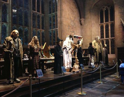 (2)电影服装、场景、道具展。参观完霍格沃茨大厅,从旁边的小门进入就到了第二部分的游览。这边陈列了演员们的服装、道具等,首先映入眼帘的就是圣诞舞会中主角们的礼服啦!这期间还有主角们的卧室、格兰芬多休息室、校长办公室、海格的小屋、陋居、乌姆里奇办公室等场景。值得一提的是其中的互动视频,可以拍摄一段骑着飞天扫帚在伦敦和霍格沃茨学校上空飞行的视频,很有意思哦!