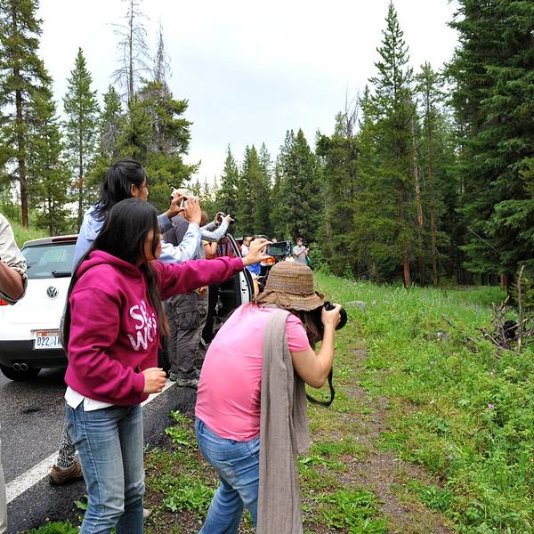 之后来到了罗斯福区,这里不光有大片的森林草地,湖泊,野牛和麋鹿,在这里我们还看到了黑熊,黑熊是...走完熊牙公路,我们直接从黄石东北门进入,之后来到了罗斯福区,这里不光有大片的森林草地,湖泊,野牛和麋鹿,在这里我们还看到了黑熊,黑熊是孩子最想看到的动物.黑熊妈妈带着两种小黑熊在一个小湖的对岸漫步,湖的这边...走完熊牙公路,我们直接从黄石东北门进入,之后来到了罗斯福区,这里不光有大片的森林草地,湖泊,野牛和麋鹿,在这里我们还看到了黑熊,黑熊是孩子最想看到的动物.黑熊妈妈带着两种小黑熊在一个小湖的对岸漫步,湖的这边上百人手持各种相机拍照,场面及其壮观. 展开