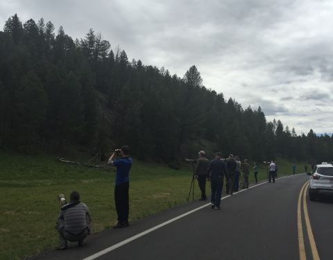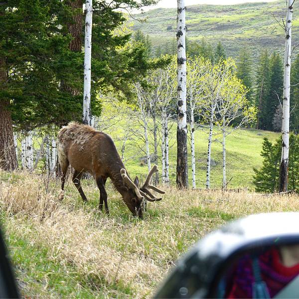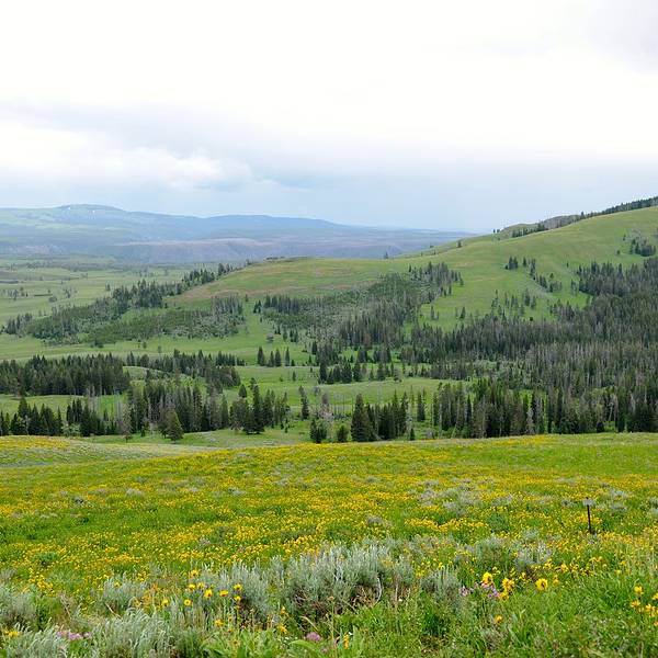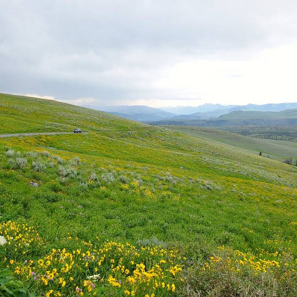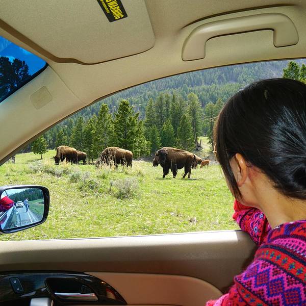 ...,不过我们这次,人品在黄石公园达到顶峰,感受一下这个距离(其实非常非常危险,不建议大家靠那么近从黄石峡谷出来,一天的时间就已经差不多啦,我们又开始往回走。来的时候没发现,原来到黄石公园北门的这一路,风光那么好,满山的野花