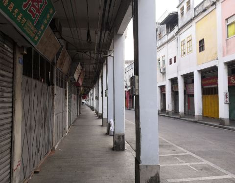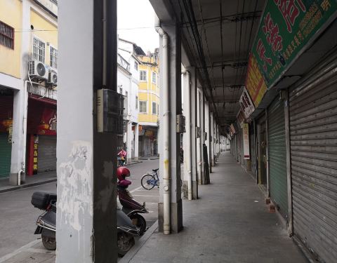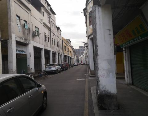 江北老街的骑楼状况还不错江北老街位于梅江北岸,是连片的老式骑楼建筑,现多为服装和日用杂货批发店铺,一层是店铺,楼上是住家。江北老街的骑楼状况还不错。