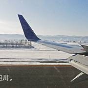 我们乘坐东航的航班,历经3个多小时抵达旭川机场,透着窗外看到下面是白茫茫的一片