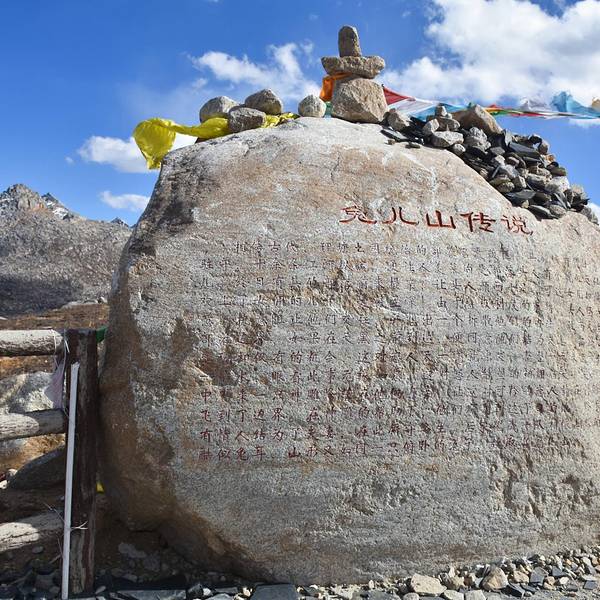 相传古代。理塘土司统治的部落名震藏区。其疆域有数十座圣山驻守。十余条江河纵流。更让人羡慕的是部落头人有一个貌似天仙的女儿。终日有其他部落前来提亲,让头人颜面十足,可这女儿偏偏喜欢上了女佣的儿子。爱慕至深!由于等级制度的束缚,头人坚决不同意。执意阻止他们交往,并想出一个拆散他们的办法:让两个人去守护部落的边界。如果在天黑之前到达,便同意他们结为夫妻。面对这难以实现却仅有的机会,这对恋人天一亮就出发,整整一天未进一粒粮食,一滴水。眼看此事无缘如愿,这对恋人绝望的相拥痛哭。突然,从空中飞来了一只神雕。降落在他们俩身边。让这对可怜的恋人骑在他的背上飞到了边界。在神雕的帮助下,他们顺利到达了目的地。终于这对有情人结为了夫妻,在此厮守终生。后来化成一对相依相畏的石柱酷似兔耳。山形就如同一只俯卧的兔子,故取名兔儿山。在兔儿山上堆石头许愿,我相信在那么高的地方许愿一定会灵验得特别快!海拔四千六百三十米4630M,我在这里留下了脚印。 展开