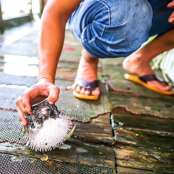 著名的陵水疍家渔排位于陵水南部的南湾半岛新村港。新村港是一个迷人的热带港湾,是世界一流的海水养殖基地和全国最大规模的石斑鱼养殖基地。据传疍家人在新村港已有500多年的历史,其祖先大多来自福建泉州和广东南海、顺德等地。疍家人靠打鱼为生,以舟楫为家,有十分浓郁的民俗风情。疍家渔排素有“漂浮美食岛”的美誉,不仅用餐环境与众不同,可见蓝天白云,可听碧水涛声;而且海鲜的味道也比别处更加鲜美,原因是这里的海鲜全部是“就地取材”,每家渔排餐厅都有自己的养殖场,不像其他地方的海鲜经过运输、池塘饲养后,海产品早就掉了膘,没了养殖场里的生龙活虎,自然就烹饪不出原本的味道了。用当地的话说,到海南,如果没吃疍家的渔排,就不算吃到海鲜。陵水渔排餐厅的美味除海虾、螃蟹、鱼和海螺外,最风味的小吃要数鱼粥了。陵水渔排的鱼粥是海南最具特色的,而且品种丰富,有“天下第一粥”的美誉,有刺鼓鱼粥,海笠鱼粥等。