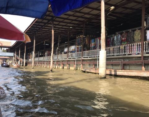 推荐坐手划船,这样游起来比较慢去大城一日游的项目,上午参观完寺庙之后,下午就来到这个水上市场,听导游说如果自己要过来的话,需要买门票进入的,其实就是坐一条船游玩。推荐坐手划船,这样游起来比较慢。