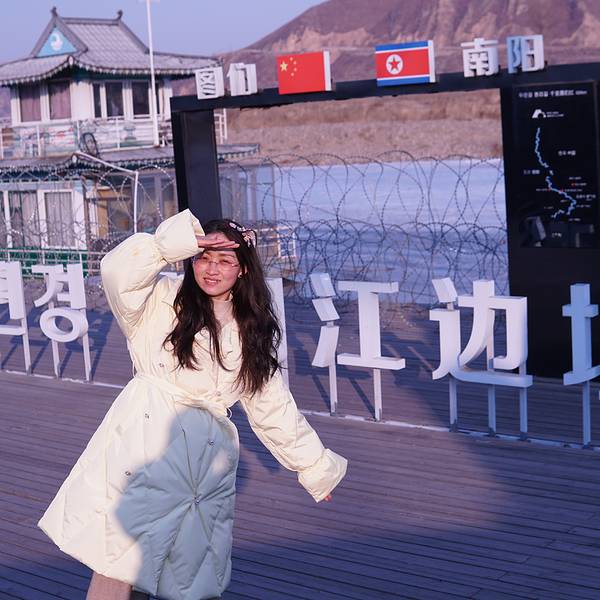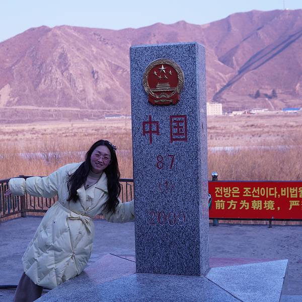 图们这边拼车都是200统一价,个人觉得还是很良心的价格,司机大叔也很热情,拍照技术不错,很会拍,还会指导我摆姿势。对面就是朝鲜。又开了几分钟就到86号界碑了,还有标志性的禁止越界标识。