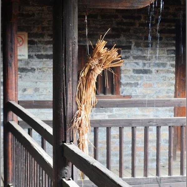 ...戴斗笠、身披蓑衣、臂抚长剑的一位,便精确契合了古龙小说中经典的情节设置,含而不露,却又杀机尽显母子俩进去有一会儿了,可我还立在门口,仰望着骑墙式门楣上模糊难辨的“燕翼围”三字,和门楣周边有些喧宾夺主的蒿草。尤其是那几蓬“怒发冲冠”般的蒿草,突兀的姿势显出是被人为放置于此,可是,它们又与黄中...母子俩进去有一会儿了,可我还立在门口,仰望着骑墙式门楣上模糊难辨的“燕翼围”三字,和门楣周边有些喧宾夺主的蒿草。尤其是那几蓬“怒发冲冠”般的蒿草,突兀的姿势显出是被人为放置于此,可是,它们又与黄中带灰的围墙、被熏得黝黑的门楣结合,仿佛“长于斯”许久,便“自然”淡去了人为的痕迹。