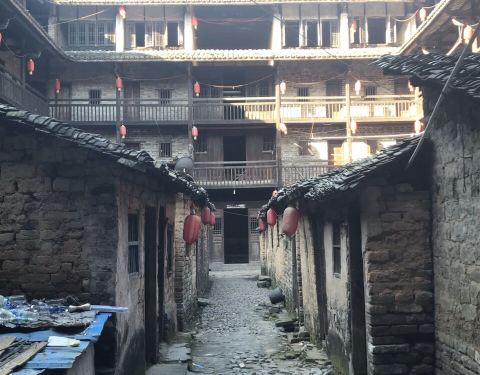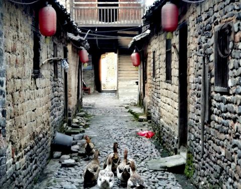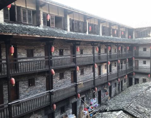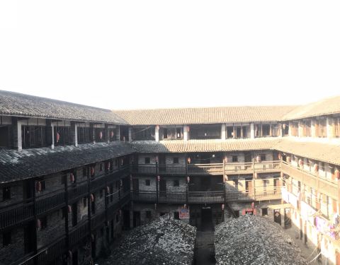 原本应当是很热闹的。燕翼围,满住时怎么也有百十户人家,这让我想起电影《功夫》里包租公婆与几十户租客。我甚至在脑海里“设计”了一个搞笑场景:包租婆满头发卷,睡衣拖鞋,叉腰狮子吼道“交租啦”,于是乎楼柱、窗户、桌几、壶盖,还有捂着耳朵的租客,皆颤颤巍巍……群居虽难免嫌隙,但总体是快乐的,一家有难,多家帮扶,就如一个大家庭。这,应该是围屋生活最自然淳朴的状态。 展开