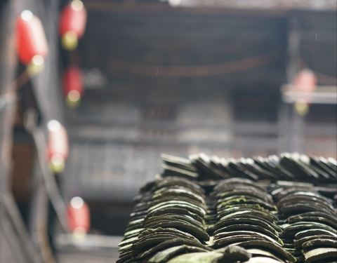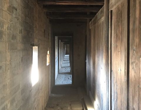 燕翼围的内部结构,很直白地点出了这种居住方式的精髓,那就是一个“群”字。四层高的楼房,每层都被长方形的巨型回廊串联起来,在楼群中央形成一个长方形的天井。楼层间以几架木梯连结,顶层与三层铺有瓦片房檐,形成重檐歇山顶式的整体结构,书写着对传统的承袭与尊重,也映射出客家人自北南迁的历史。细节反映真实。说到屋檐,开平碉楼则多为平顶,自远处瞧,更有西洋城堡式塔楼的端倪;碉楼主人多是久居海外的华侨,因而他们更易接受西方建筑思维的影响。