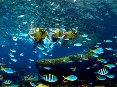 来到水上探险乐园,可以选择挑战急速滑道,或是悠闲地在河上漂流,还可在七彩珊瑚中与 2 万多条热带鱼一同浮潜,涉水走过鳐鱼聚居地,当然,个人认为最最精彩的就是海豚伴游啦!虽然有点小贵,但是肯定是特别好的体验~~
