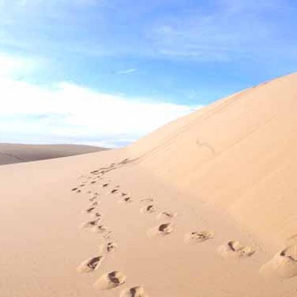 白沙丘的坡度大,在这里滑沙绝对是最刺激的体验,天然的滑梯,当然你也可以和柔软的白沙亲密接触,在沙海中尽情翻滚。