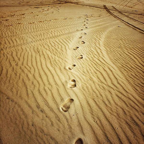 翻过两个山头,不再是无暇的沙子,可以看到一簇簇植物存在过的痕迹保留在那里。