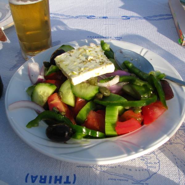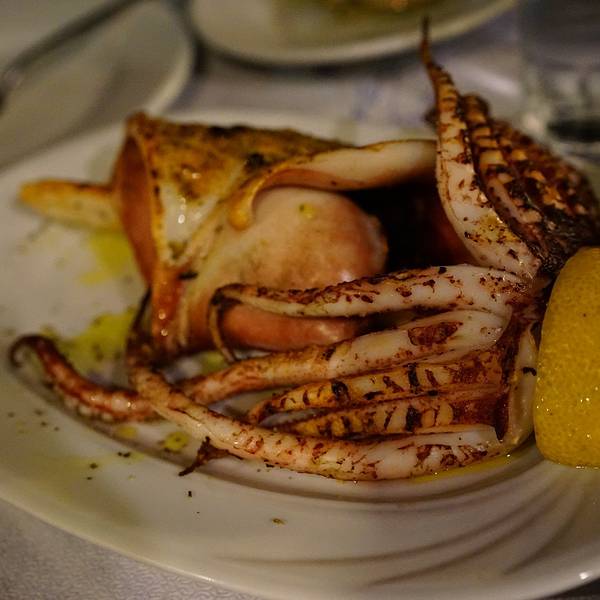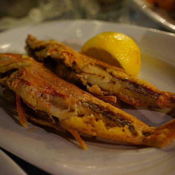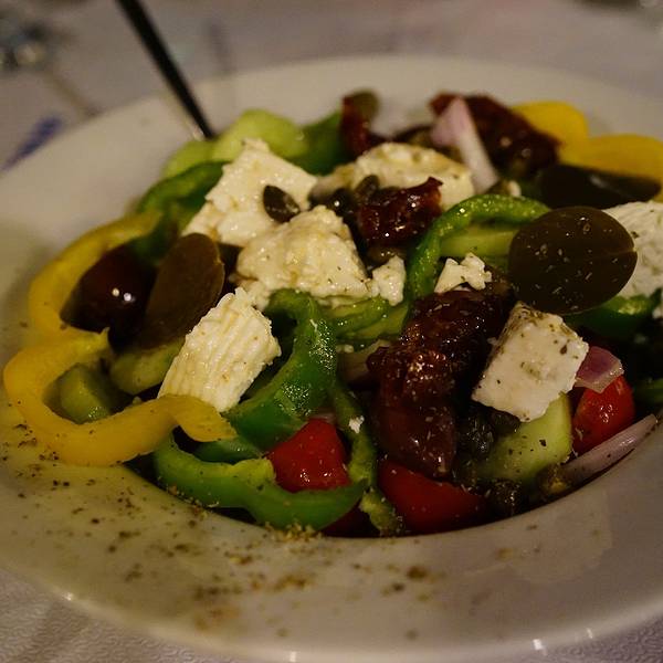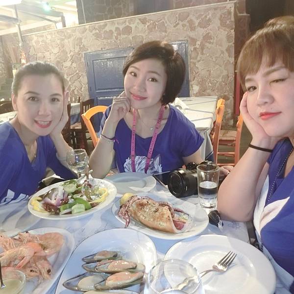推荐指数:,一定要点青口!!你绝对不会后悔!!国外的沙拉离不开就是芝士、青椒、洋葱这些味道很浓的东西,这时候就很想念我们的热炒了。鱿鱼是希腊最普遍的食材,相当于我们国内餐牌上的猪肉,说实话不管鱿鱼怎么做,我们都觉得它并没有很好吃。只有虾是最优选。这家餐厅的虾确实是我们8天中吃过最大最新鲜的,你无需考虑怎么烹调,厨师会给你最满意的结果。这个青口必须墙裂推荐,也是在希腊吃到最大最肥的青口,比我们在新西兰吃到的更鲜更甜。那天我们就天真地认为,原来希腊的青口才是一绝啊,没想到后面再也没有遇到这么大的,而且都是非常非常小的,相当于我们国内的花甲这么大,所以,去圣岛的伙伴们,一定要去KATINA吃青口啊!往死里吃!你绝对不会后悔!各种鱼类也是他们餐厅的特色,不过相比我们粤菜的做法,这种烤鱼就口味一般般了,但是新鲜是绝对的。连出来晚饭也要搭配衣服的颜色,默契满分