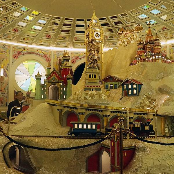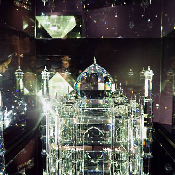 更重要的是,在水晶世界出口处,你可以大约国内标价基础上6折左右的价格买到施华洛世奇水晶哦!水晶云彩。如果白天来,可以看到闪闪发光的水晶云彩的效果。据说是世界上最大的水晶。大概60公斤。水晶世界里有各种艺术造型的作品。值得慢慢欣赏。水晶版泰姬陵。这个展品的亮点在于上面的配色实时在改变,每过几秒就会变换,一共是有貌似几百万种变化。反正在不同时间看到的,就是不一样的。这是灰姑娘电影里的水晶鞋。据说施华洛世奇打造了12只,其中国内某IT大佬据说买走了一只。