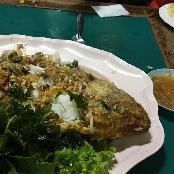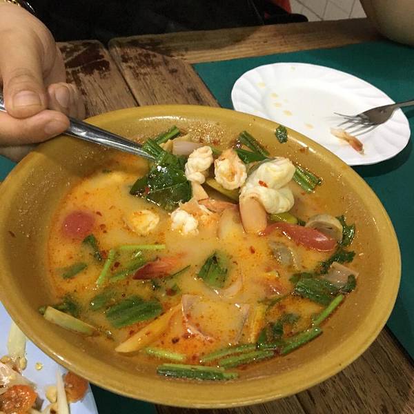 晚上来到皇权免税店,其中我们打taxi去的,曼谷人不是很好,司机比较黑容易被宰!我们也不例外,五分钟就到给我们绕了好远!还要了我们两百株!印象极其不好,到了免税店人满为患,跟不要钱一样😄!但是欧莱雅...晚上来到皇权免税店,其中我们打taxi去的,曼谷人不是很好,司机比较黑容易被宰!我们也不例外,五分钟就到给我们绕了好远!还要了我们两百株!印象极其不好,到了免税店人满为患,跟不要钱一样😄!但是欧莱雅牌子的化妆品还是值得购买的,比国内便宜一半),宝妈血拼呀!晚上去当地人最多的一家饭店吃饭,正宗的泰国米饭,海鲜汤酸甜苦辣不是味,泰国人口味真重啊!烤鱼不错,外焦里嫩的,海鲜一直是没话说的好吃!戴小姐一波米饭吃完了!
