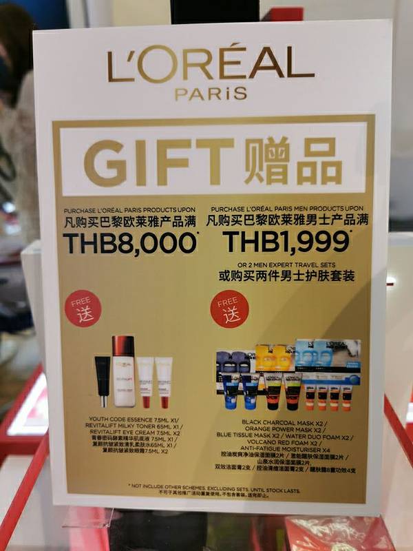 哦哟,稀奇了逛完零食直奔欧莱雅,没办法每次来泰国必买,中老年妇女专爱欧莱雅,泰国的欧莱雅一直都很便宜,想当年我在泰国混迹的时候买了不知多少支欧莱雅洗面奶。帮我妈买了一个雪颜美白套装,840铢折合人民币不到200块。欧莱雅买套装划算最后帮朋友迪奥999哑光,1005铢。护肤品化妆品满5000减1000,但是,我自己没什么想要的所以也没有买够5000铢,主要是想买点伴手礼送朋友,所以就只买了米饼,我妈的欧莱雅和朋友的口红就打道回府了。