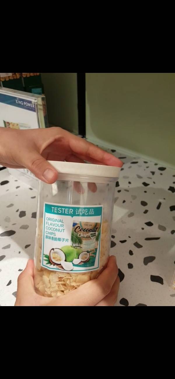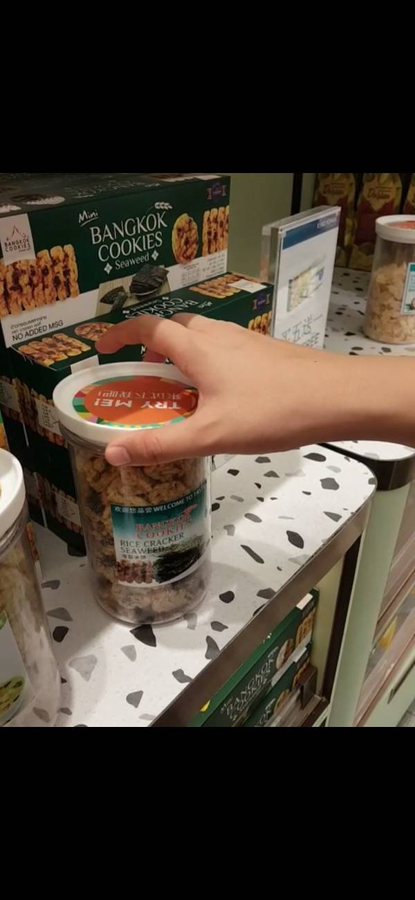 本人本身是很喜欢米制品的,这个米饼也确实很独特,小小的,一口一个,不用担心太大用咬的掉屑屑。然后我把它所有口味都吃了一遍,专柜小妹有点不高兴了我个人觉得榴莲味和海苔味是我最喜欢的,你们懂的,回国榴莲是贵的,所以各种榴莲味的东西对于我一个榴莲控来说是必须的。然后,这个是米香味带着榴莲味,真的很独特。然后海苔味也很好吃,吃过泰国海苔的人都知道,泰国海苔没有韩国的干,这个海苔味米饼就是酥脆中带着淡淡的海苔味,我爱吃想了一下一个口味买了两盒,回国可以做伴手礼。关键买五送一,除了榴莲味和椰子味的210铢一盒外,其他都是180铢一盒,他赠送的只能选原味或者冬阴功味的最后专柜小姑娘跟我说,这个米饼只有Kingpower有卖,其他地方还买不到。