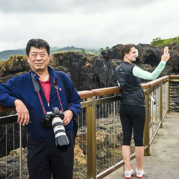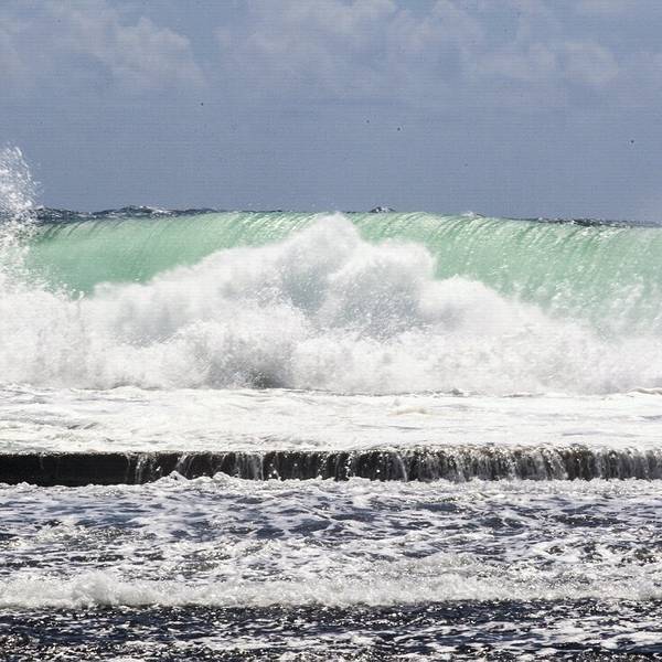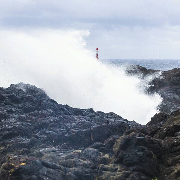 所谓“喷水洞”,其实就是亿万年前说不清道不明的大自然造化,鬼斧神工地在这一坨坚硬的火浆岩上,留下了这么个巨大中空的“L”形孔洞,而且底洞的开口正对波涛汹涌的外海海面。每当有外海的大浪以奔腾万里、不可一世的气势汹涌而来,却无奈地在瞬息之间被推入这个憋蛰的石洞,继而又重重地一头撞上竖洞的峭壁之后,立刻就变得怒不可遏,以百倍疯狂的报复能量,从竖洞中腾空而起,直冲云天,向这个世界大声昭告自己最后一刻狂傲不羁的悲呛!伴随着这一声声远古巨兽般低沉郁闷的巨大吼声,十多米高的巨大水柱一次又一次从竖洞喷涌而出,在刹那间立刻变成细碎的白色浪花,再从空中四散洒落下来时,这一奇特的自然景观所引起的,绝不只是在其四周围观游客的一阵阵尖叫与惊叹,而是让全世界都记住了这一澳洲奇观——凯马喷水洞,KIAMA BLOWHOLE。Blowhole喷水洞,涨潮时后浪推前浪,当巨浪冲击悬崖边天然的断层时,在压力的作用下喷出一个巨大十多米高水柱刹时变成白色的浪花在空中洒落下来。同时伴有低沉巨响的涛声像远古一种宏兽的吼声。间歇中比较下一张就看出风与浪的力度Blowhole雨是停了,可风还有6-7级,喷出水柱巨大,满天飘着海沫像巨大的雪花。据说风小时喷水孔可没这么壮观。海浪打起到海沫像大朵棉絮飘着 展开