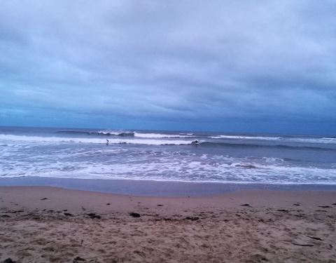 而远方的海与空还是暗蓝的,四月底已是深秋了,还是有人在冲浪,沙滩是细腻而洁净的,阿波罗湾无疑是美丽的这里值得去的,已经是入黑的前夕,再加上阴天,可是不知怎的,天空和沙滩都有些暗红,而远方的海与空还是暗蓝的,四月底已是深秋了,还是有人在冲浪,沙滩是细腻而洁净的,阿波罗湾无疑是美丽的!