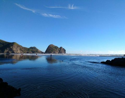 厕所基本没有,不过通常人也很少。不过这才是真正的新西兰海啊。大家游泳一定要小心典型新西兰风的野黑沙滩,延绵不绝。海里风高浪大,我老公有次去冲浪,差点就义,被困在乱石滩上。大家游泳一定要小心。不过这才是真正的新西兰海啊。厕所基本没有,不过通常人也很少。